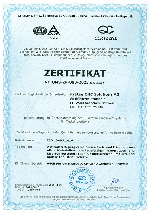 Preteq CNC Solutions verbindet über hundert Jahre industrielle Erfahrung mit modernster Fertigungstechnologie. An unseren Standorten in der Schweiz und Tschechien arbeiten wir als internationales Team daran, Präzision zu einem verlässlichen Versprechen zu machen.