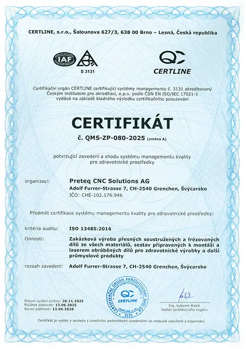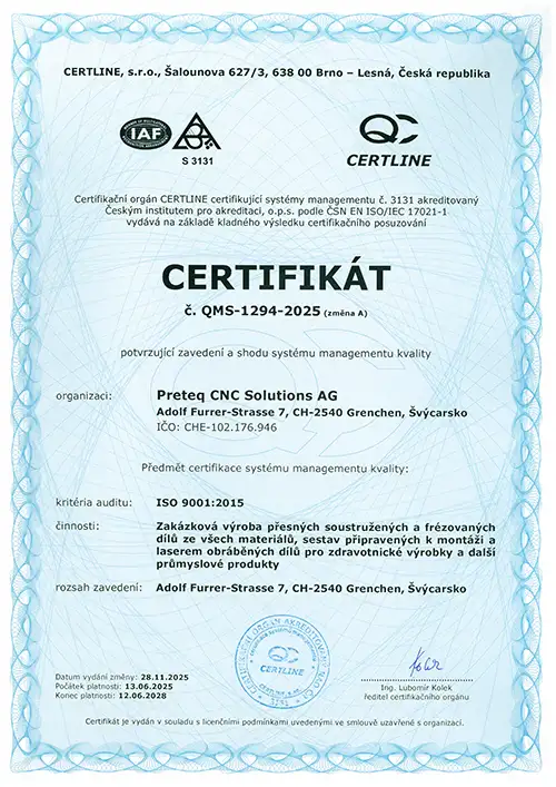 Preteq CNC Solutions spojuje více než sto let průmyslových zkušeností s nejmodernější výrobní technologií. Na našich pobočkách ve Švýcarsku a Česku pracujeme jako mezinárodní tým na tom, aby se přesnost stala spolehlivým slibem.